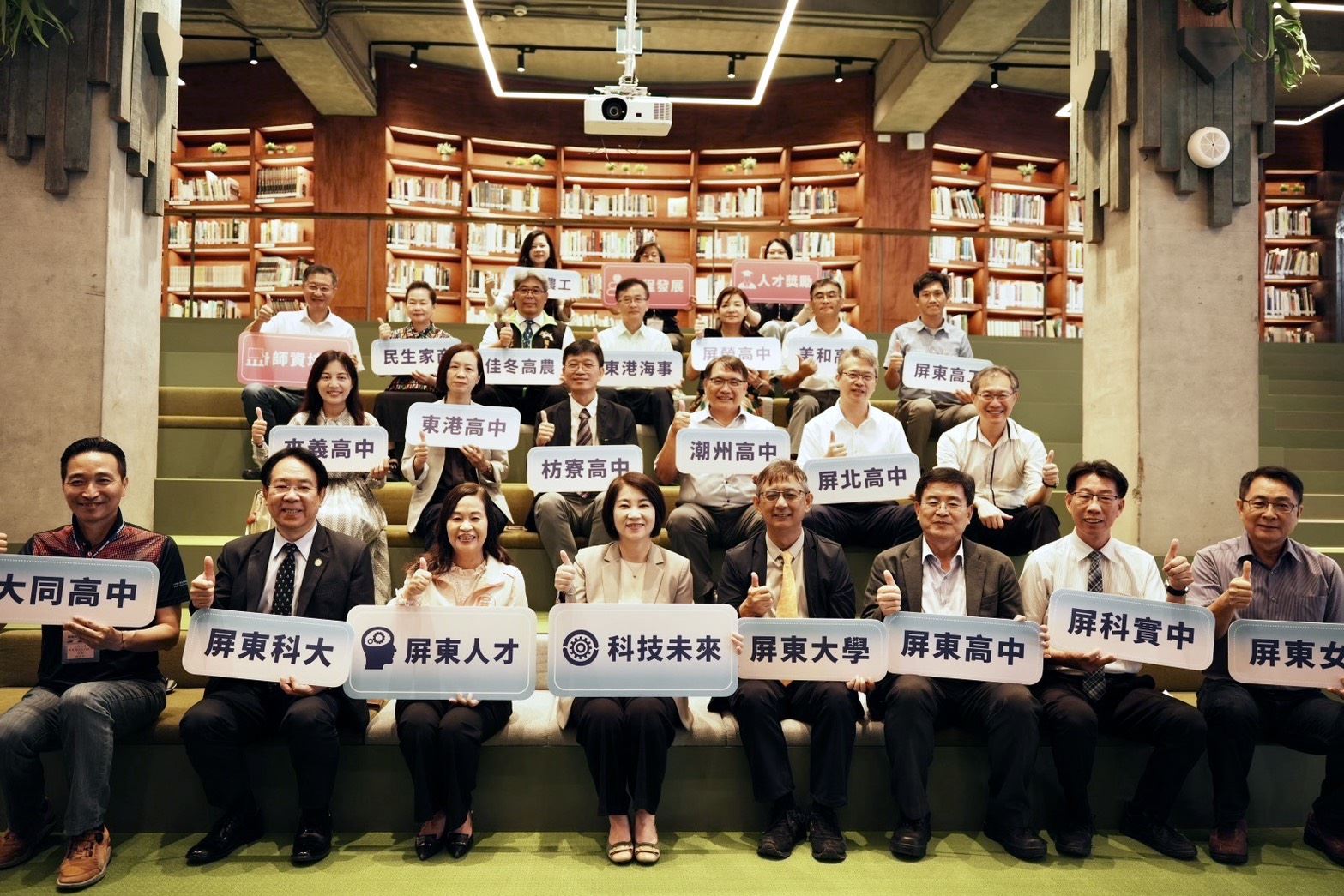 【記者戴英薇/屏東報導】 因應未來科技人才需求,屏東縣政府在屏菸1936文化基地舉辦「屏東縣高科技產業人才培育計畫」記者會,縣長周春米攜手屏東縣公私立大專院校及高中職宣布計畫正式啟動,從課程發展、人才獎勵及師資培力三大面向厚植人才競爭力,114年度起補助縣內公私立高中職每學年50萬元、教師每學期最高1萬元進修費及提供高中職、大專院校及研究所學生獎學金分別1萬與3千元。