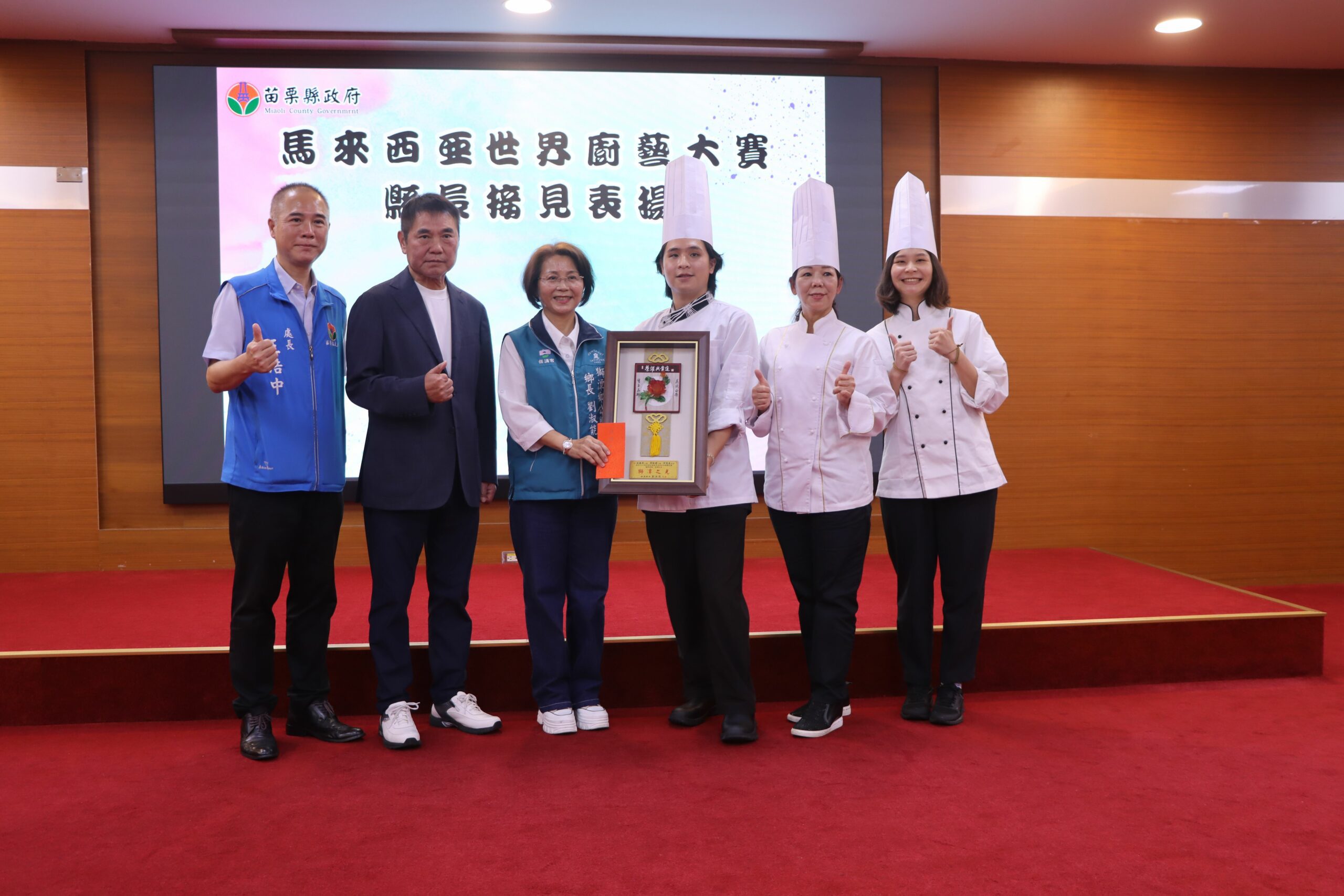 縣長鍾東錦親自頒發獎牌與榮譽證書,盛讚三位選手在比賽中展現的不僅是廚藝技巧,更是對家庭情感與文化記憶的深刻詮釋。他表示,這不只是一次比賽的勝利,更是苗栗在國際餐飲舞台上的一大突破。