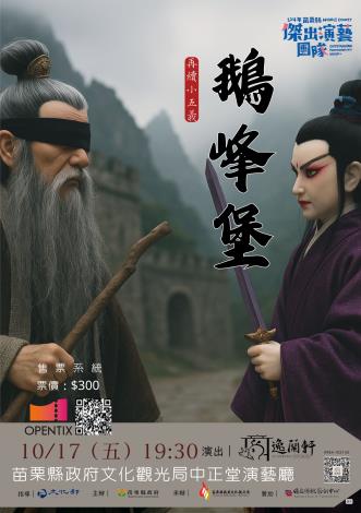 在傳統表演藝術逐漸式微的時代,苗栗縣卻仍見到民間劇團堅持創新與傳承並行的活力。由苗栗縣政府文化觀光局推動的「114年扶植傑出演藝團隊計畫」中,逸蘭軒掌中劇團即以其兼顧技藝與劇本創新的布袋戲創作脫穎而出。該團預計於10月17日(星期五)晚間7時30分,於苗栗中正堂演藝廳演出劇目《再續小五義-鵝峰堡》,門票每張300元,現正於Opentix售票系統熱售中。