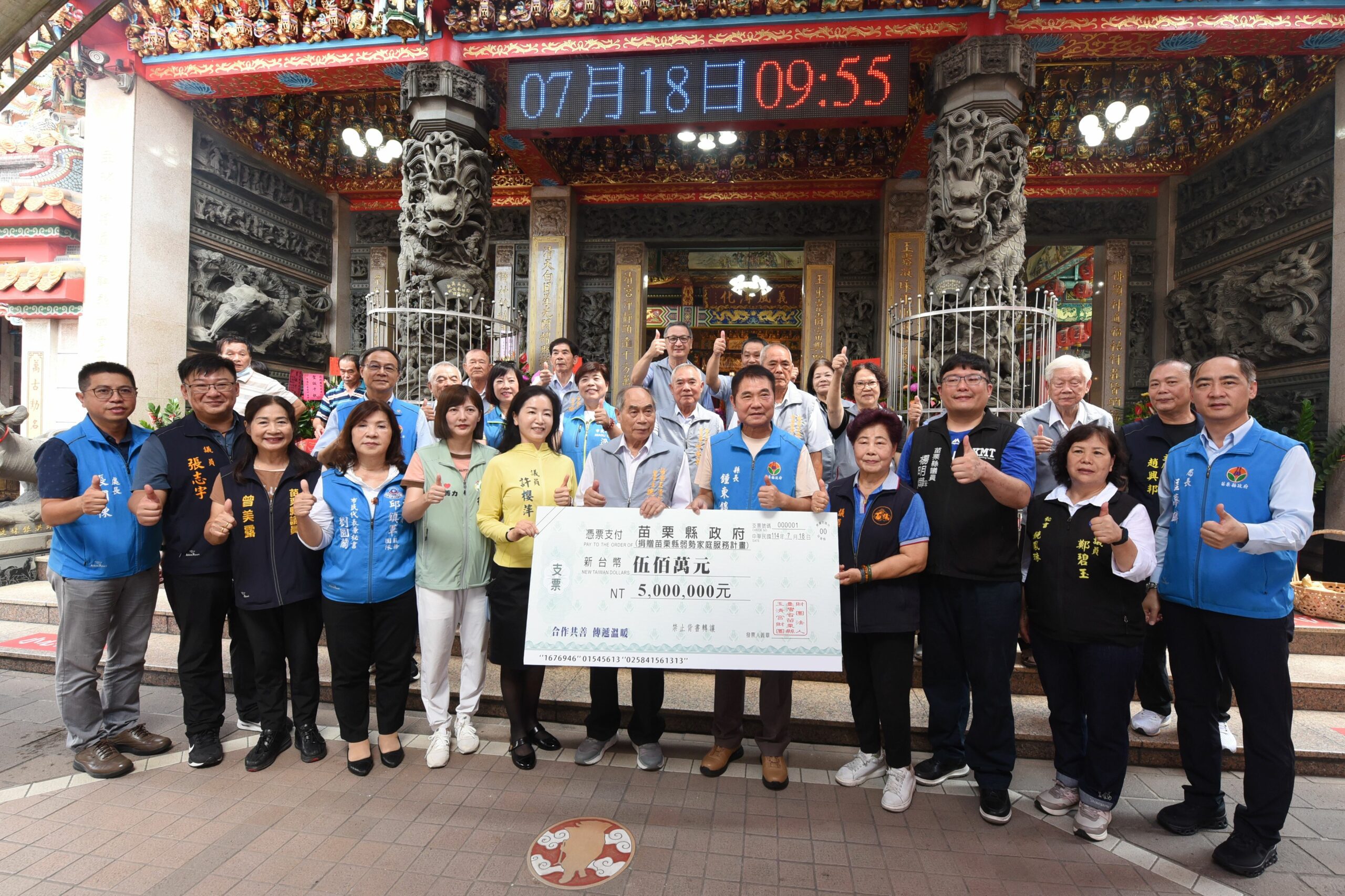 恩主公聖誕摎愛化做行動 苗栗玉清宮捐贈500萬助弱勢與救災