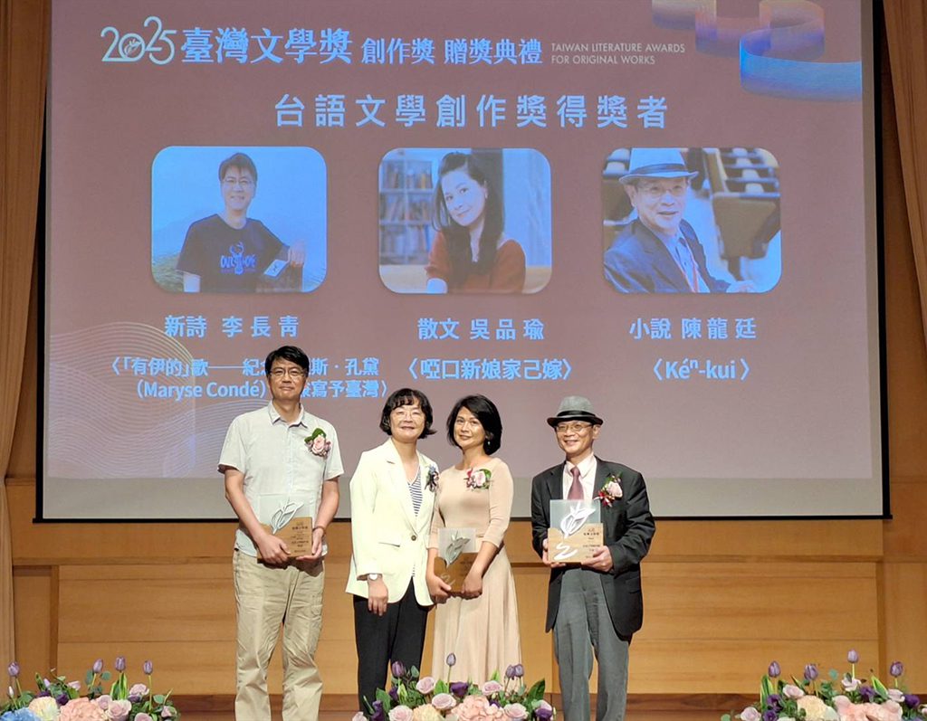 台語文學新詩獎頒贈予李長青〈「有伊的」歌──紀念瑪麗斯‧孔黛(Maryse Condé),兼寫予臺灣〉,李長青表示,本作品不僅傳遞個人心聲,也透過台語詩的形式呈現臺灣文化的多重面向,甚至從國際視角反思臺灣,讓更多人看見台語文學的價值與獨特性;旅居德國的吳品瑜以〈啞口新娘家己嫁〉獲得散文獎,她形容此次榮譽如同獲得一朵「臺灣文學的紅牡丹」。她表示,母語創作讓她能夠書寫臺灣女性的傷痕與故事,也讓她重新找回自我。她也呼籲更多人撿回母語,透過文學凝聚島嶼共同體;小說獎由陳龍廷〈Kéⁿ-kui〉奪得,他深耕布袋戲研究30多年,也投入台語創作20餘年,其在得獎感言內感謝呂興昌老師的指導,並表示臺灣有許多值得探討的議題,但需要找到合適的寫作技巧才能準確表達。本篇小說費時數年才完成,陳龍廷特別將此榮耀獻給在天上的父母與培育其文學成長的成大台文系。