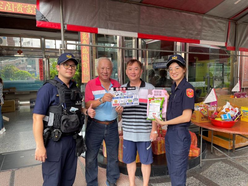 農曆七月感恩月,各家各戶紛紛設案普渡祈求平安。屏東分局崇蘭派出所副所長莊沛宇帶領員警,特別準備「乖乖」小點心,外貼反詐騙宣導標語,化身「乖乖使者」,在轄區巡視時主動向拜拜住戶贊普,將防詐與交通事故防制觀念送進社區。