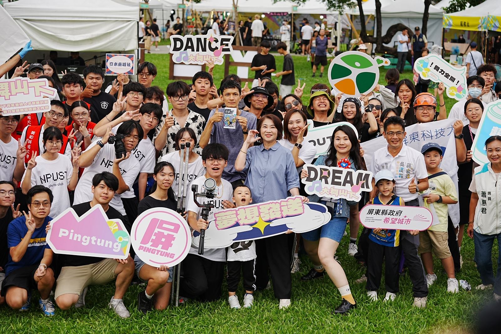 【記者范家豪/屏東報導】 屏東縣政府在屏東縣民公園熱鬧舉辦「夢想發送x大舞山下排舞大賽」,將大專社團博覽會結合排舞大賽,聚集本縣大專院校社團與上百位青年舞者,以青春活力展現多元、開放的屏東青年面貌,周春米縣長到場力挺大專青年,細數各項屏東縣青年福利,信心喊話縣府要當青年們的夥伴,讓大家在屏東好好發揮所長,好好生活。