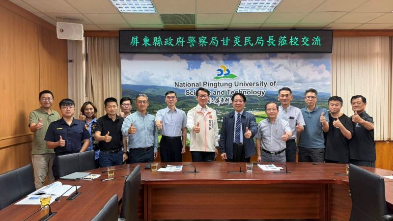 因應本縣學生交通事故議題,屏東縣政府警察局與國立屏東科技大學特於10月9日下午共同簽署《推動校園交通安全合作共同宣言》。本次活動由警察局局長甘炎民率領內埔分局及交通警察隊前往拜會屏科大校長張金龍及相關校安單位,藉此強化警政與教育體系之協作關係,並積極推動校園交通安全機制,致力於建構更安全、友善之校園交通環境。