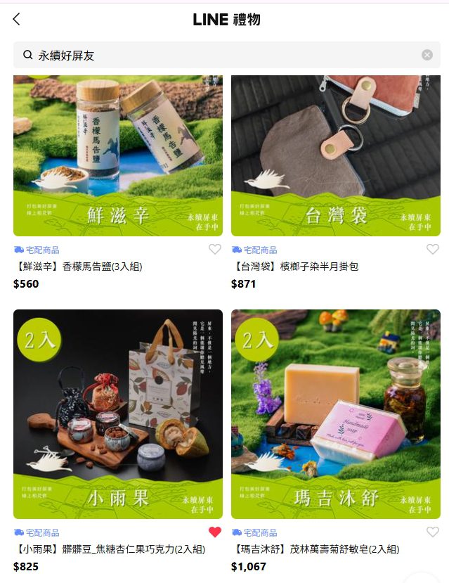 ▲LINE 禮物搜尋"永續好屏友"18個青年品牌 (圖/屏東縣政府)