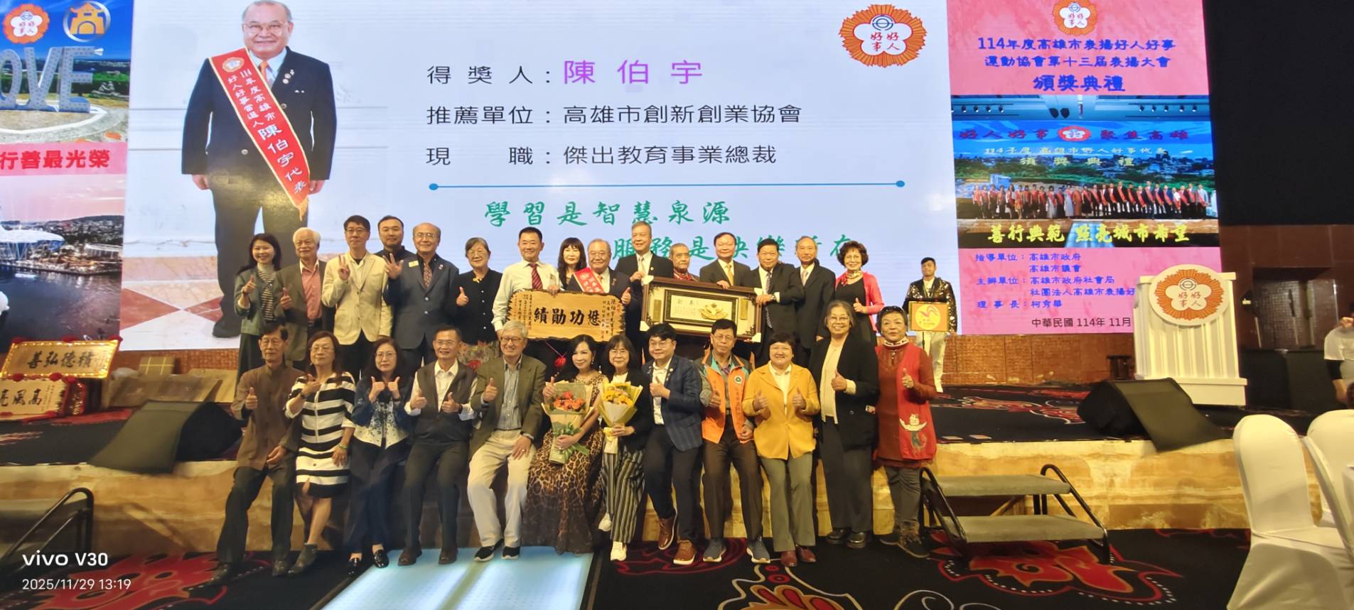 【記者 周志杰/ 高雄報導】在這個城市,有許多默默付出的人,用平凡的行動溫暖人心。昨(11/29)日上午,由社團法人高雄市表揚好人好事運動協會主辦的「114 年高雄市好人好事代表表揚大會」,於高雄林皇宮五樓宴會廳舉行,公開表揚 27 位來自企業、教育、慈善、志工、社會服務等領域的「善行楷模」。透過典禮與公開名單,協會希望讓城市看見「善的力量」,也期能喚起更多人關懷社會、實踐助人精神。
