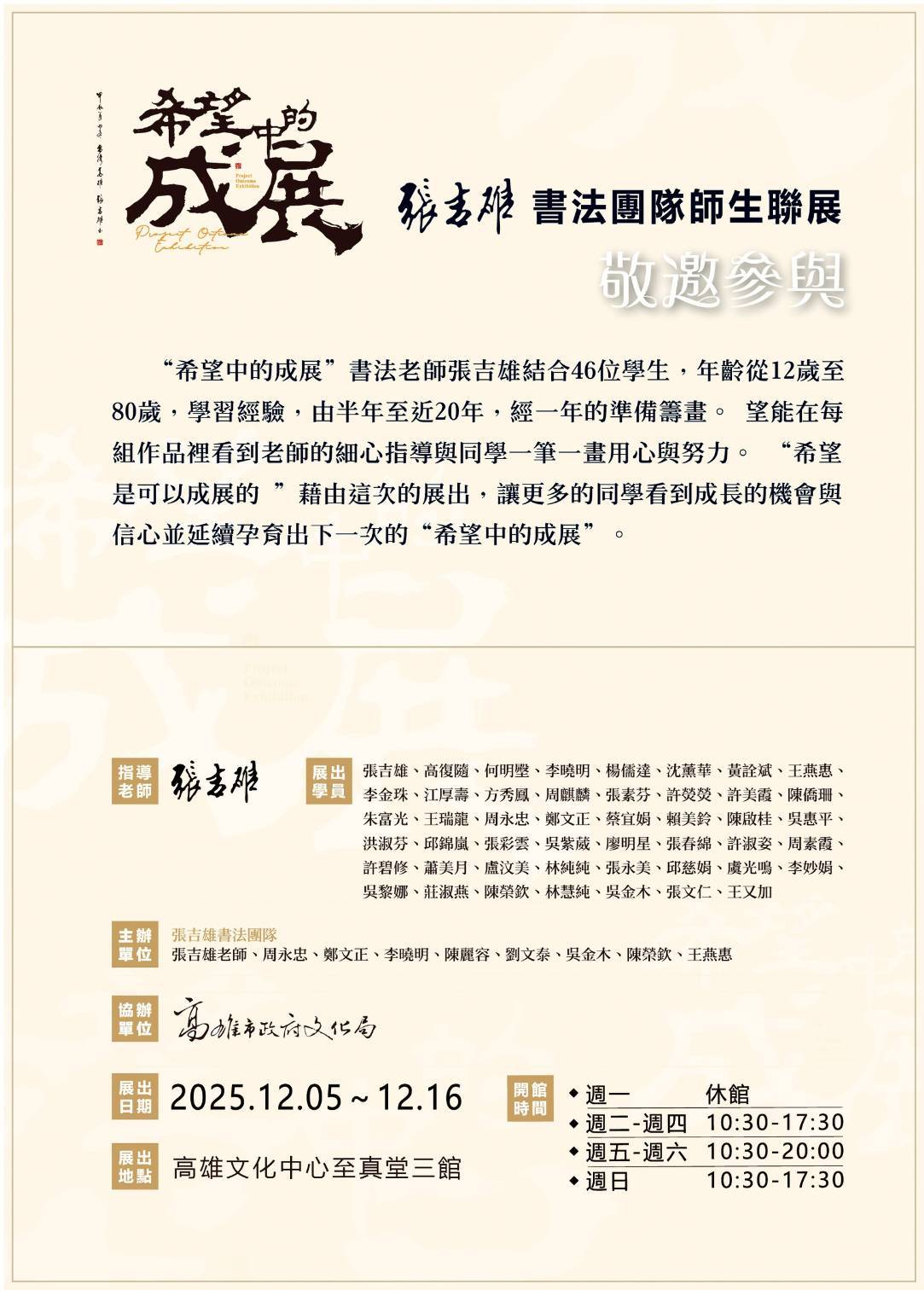 【薪火相傳、桃李滿門】張吉雄書法團隊師生聯展「希望中的成展」