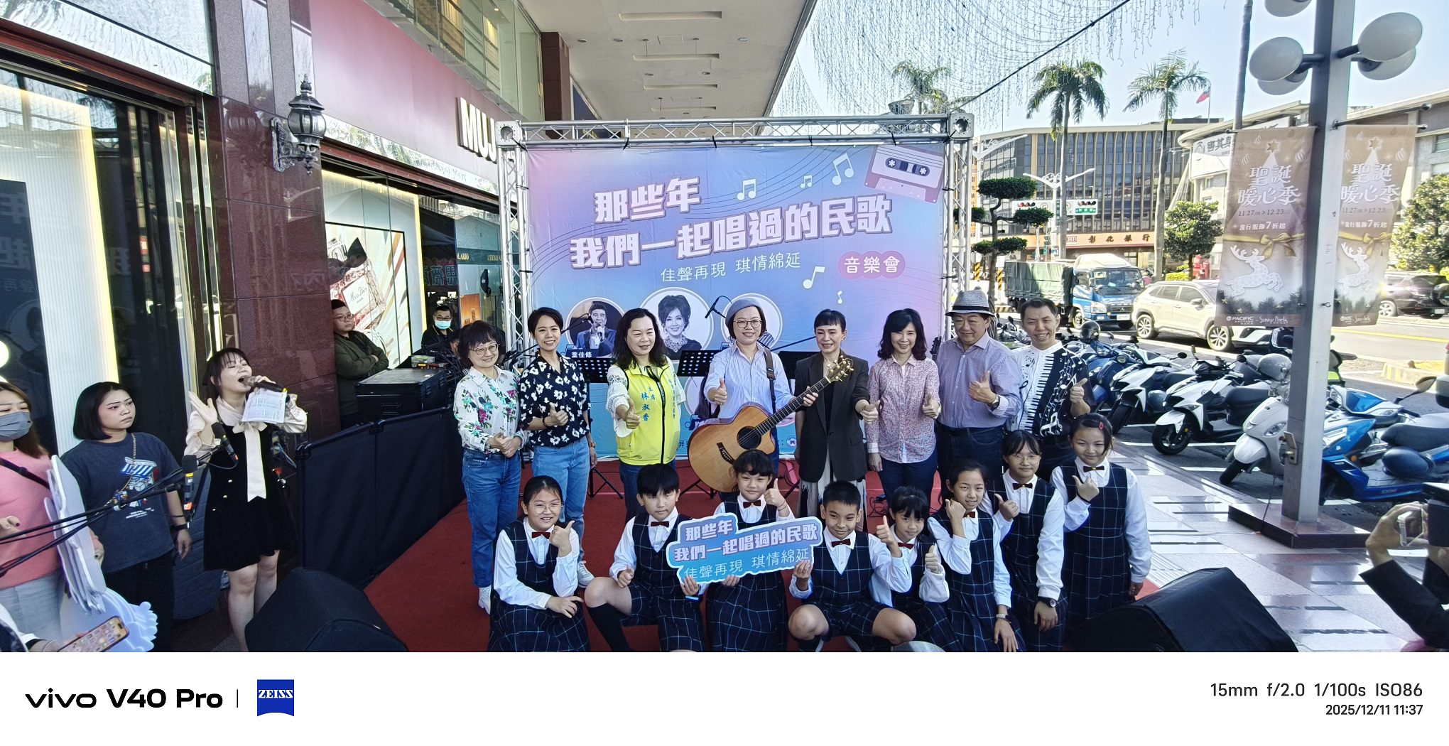 特別的是,周佳琪市長更在現場背上木吉他,與孩子們一同合影,展現民歌精神「人人能唱、人人能感動」的真諦。這一幕不僅喚起在場民眾的青春記憶,更象徵市公所團隊用心規劃,讓音樂跨越世代、凝聚屏東。