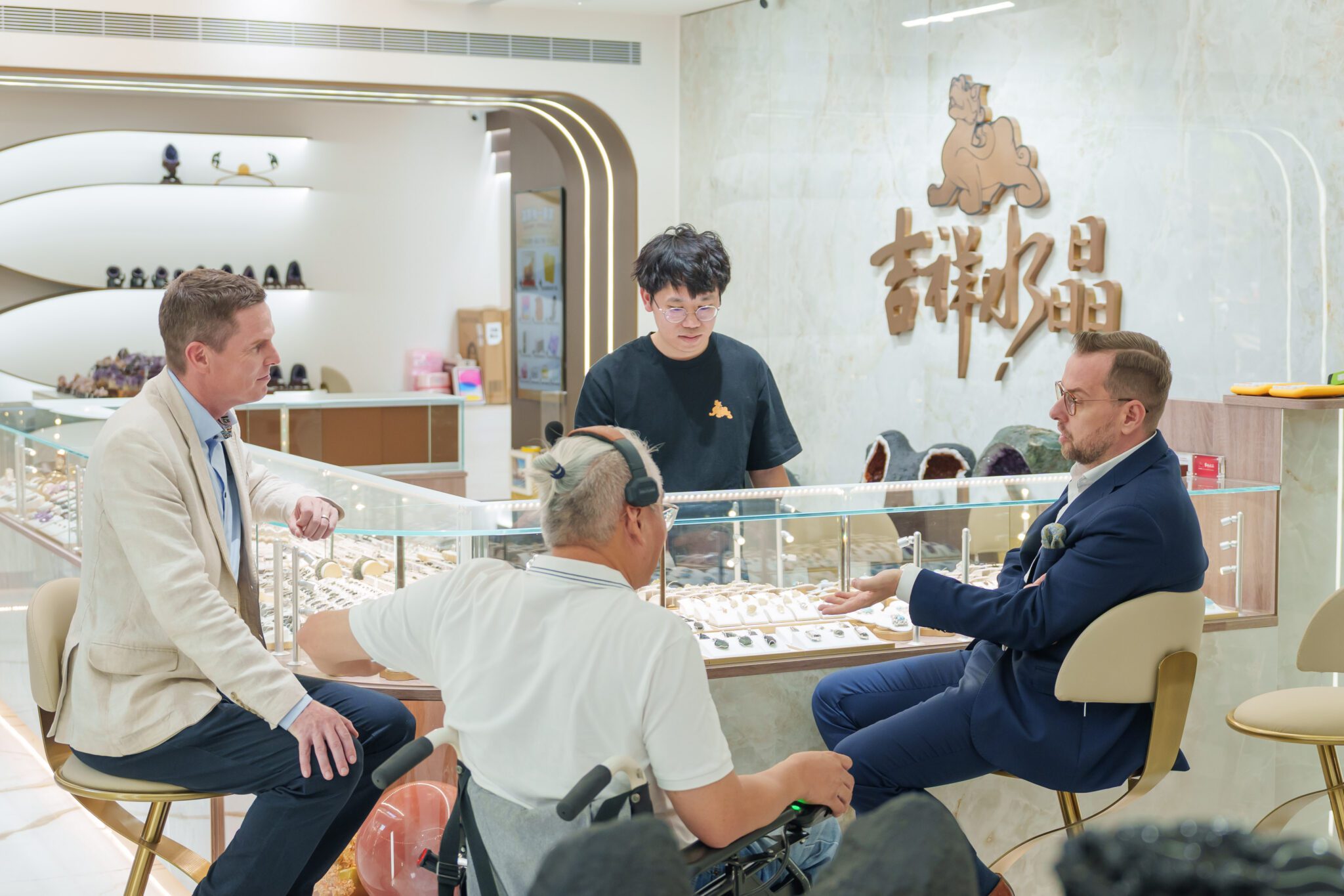 經發局說明,午餐則來到西區「ABV 地中海餐廳」,與芬蘭駐台代表羅瑞相聚,兩人相談甚歡。史代表更在鏡頭前化身「小主持人」介紹好友,上桌的爵士樂一下,他立刻跟著節奏擺動,導演大讚他是天生的鏡頭焦點。午後,他前往西屯「吉祥水晶」探索捷克國寶──莫爾道玻隕石(Moldavite),以專業解說其珍稀性與收藏價值,並分享這顆擁有 1,500 萬年歷史的自然寶石在台灣同樣深受追捧。