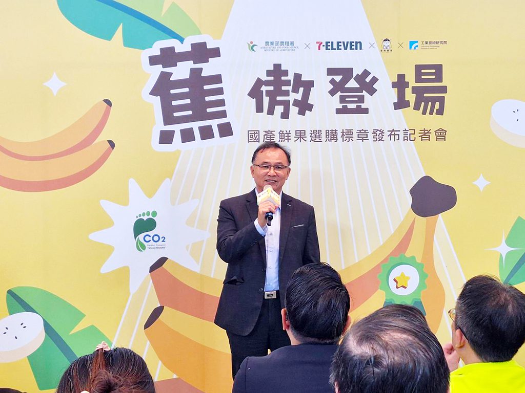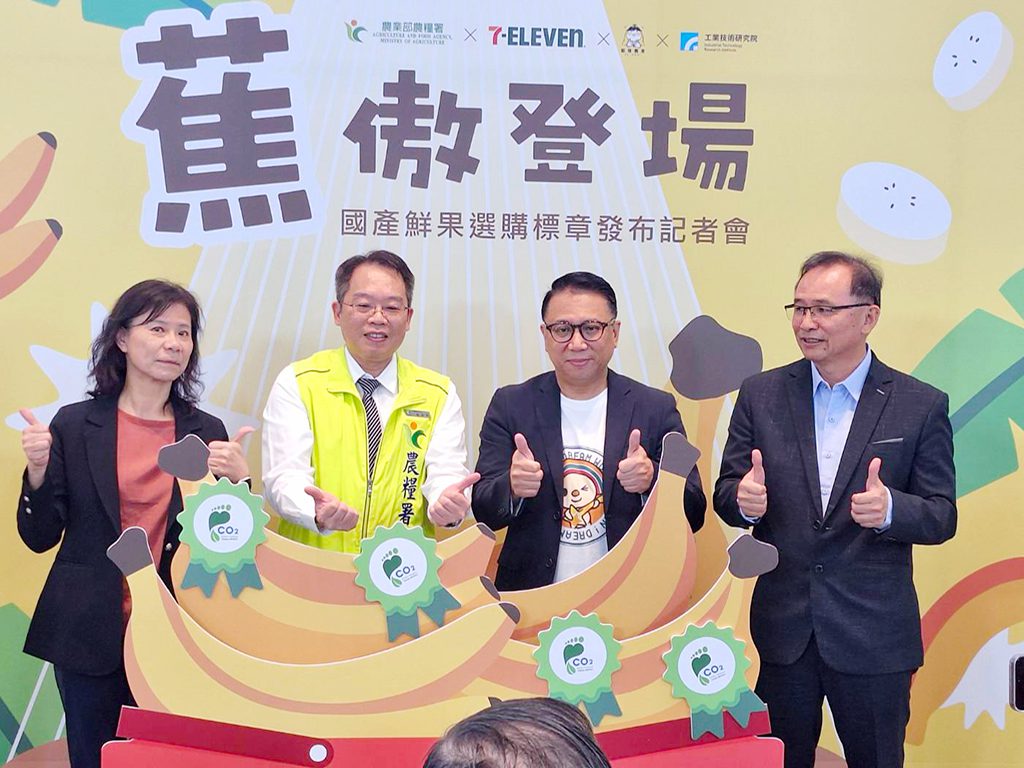 【記者吳玉惠/臺南報導】 農業部農糧署攜手工研院、藝隆農產公司及 7-ELEVEN 於今(12)日假臺南首府門市舉辦「國產農產品推廣暨碳足跡標章成果記者會」,共同見證臺灣香蕉首度取得「產品碳足跡標籤」的重要里程碑,展現農業減碳行動的具體進展。農糧署長期致力提升鮮果品質穩定性與流通效率,並因應農業淨零排放政策,導入碳足跡管理機制,協助業者通過盤查與驗證,邁向永續農業新階段。