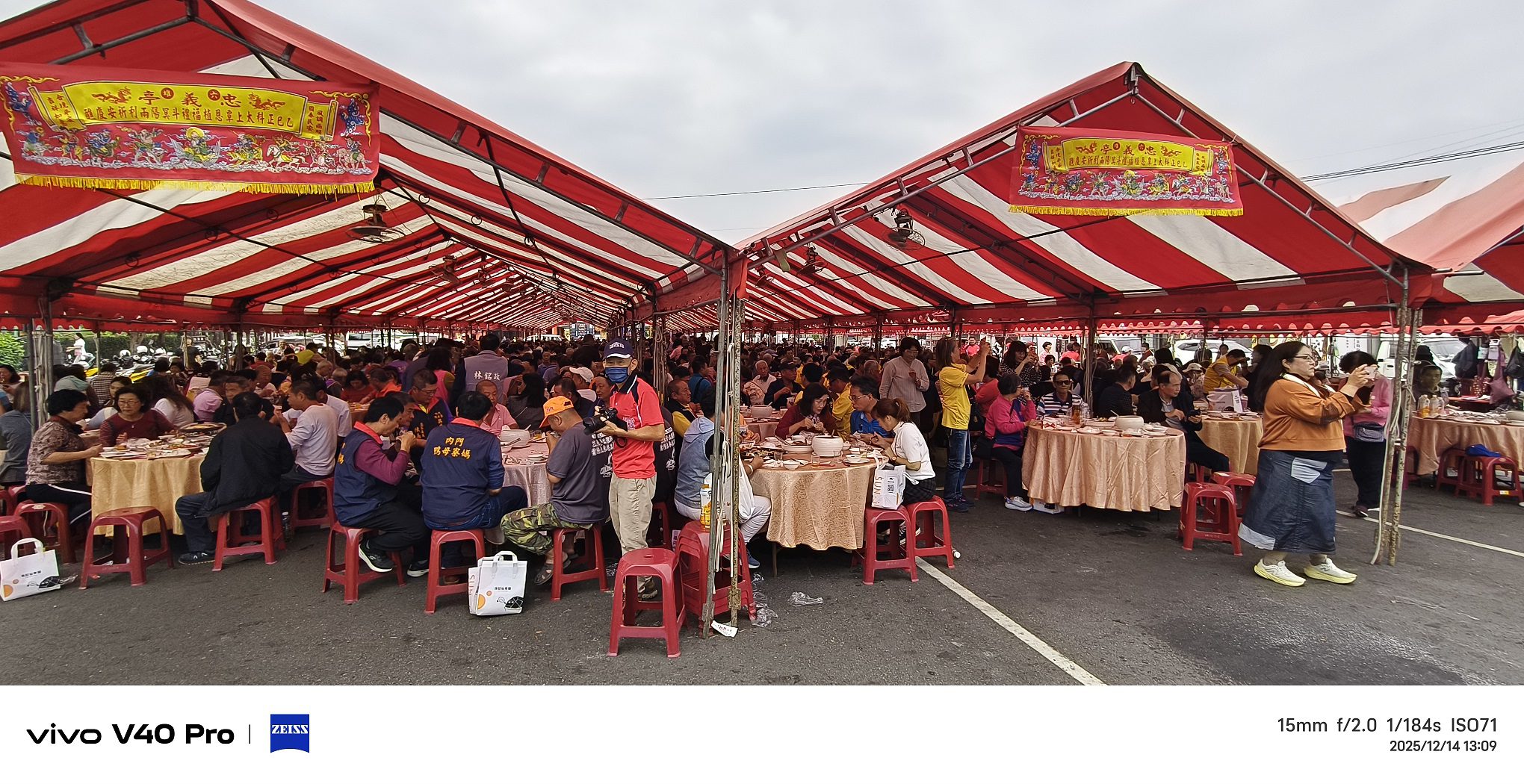 【記者范家豪/竹田報導】 六堆客家歷史邁入第304年,首度舉辦「第三百年大醮」的六堆百年大醮活動,於12月14日中午在六堆忠義亭前方停車廣場隆重舉行圓滿宴,席開138桌,吸引來自各地的六堆鄉親齊聚一堂,共同見證這項深具歷史意義的文化盛事,現場氣氛熱烈、盛況空前。