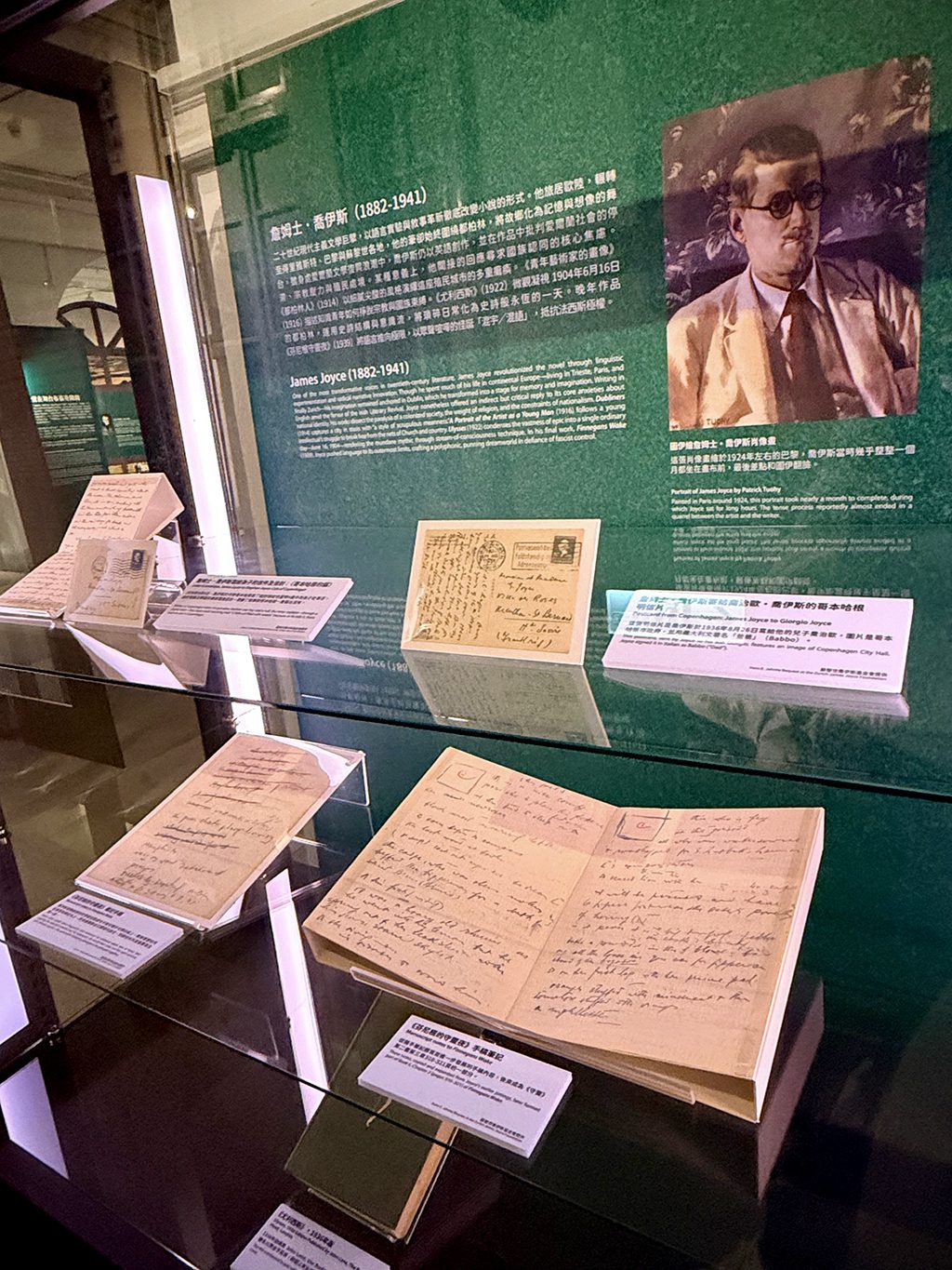 本次展覽展出多項珍貴文物,包括蘇黎世喬伊斯基金會所提供,首度來臺亮相的喬伊斯最後一部長篇小說的《芬尼根的守靈夜》(Finnegans Wake)創作筆記、寫給兒子的明信片、寫給孫子的信件〈哥本哈根的貓〉(The Cats of Copenhagen)、出版《尤利西斯》(Ulysses)的法國莎士比亞書店創辦人希爾薇雅・畢奇(Sylvia Beach)與喬伊斯往來信件,以及喬伊斯曾使用的小手提箱與手杖;愛爾蘭國家圖書館提供授權複製的蓋爾語資料與奚尼手稿,還有紐約公共圖書館提供授權複製葉慈手稿及貝克特劇照等。