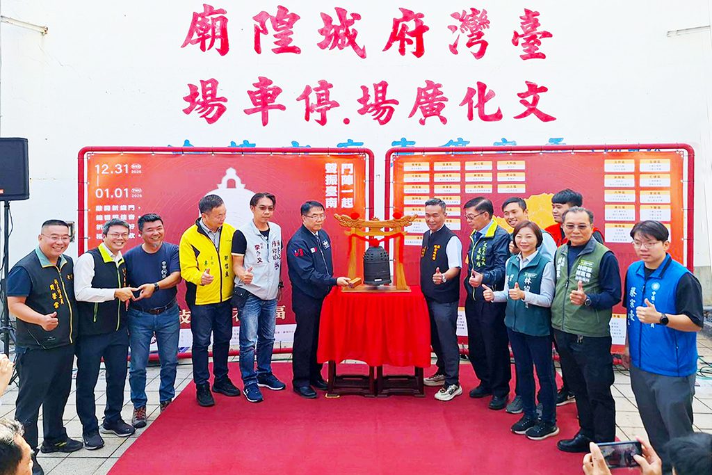 臺灣府城隍廟特別請出「百年古鐘」敲響祈福。主委郭榮哲表示,這口百年古鐘長年珍藏於府城隍廟文物館中,此次透過「跨年敲鐘祈福」活動再次鳴響,別具歷史與文化意義,並期盼藉由百年古鐘的敲響,能為新的一年帶來平安與祝福,同時鼓勵更多宗教團體共襄盛舉,讓敲鐘祈福的祝福聲在台南持續擴散。記者會中,包括市議員蔡筱薇、沈震東親自到場,立委陳亭妃、林俊憲服務處及各議員服務處也派代表出席見證。
