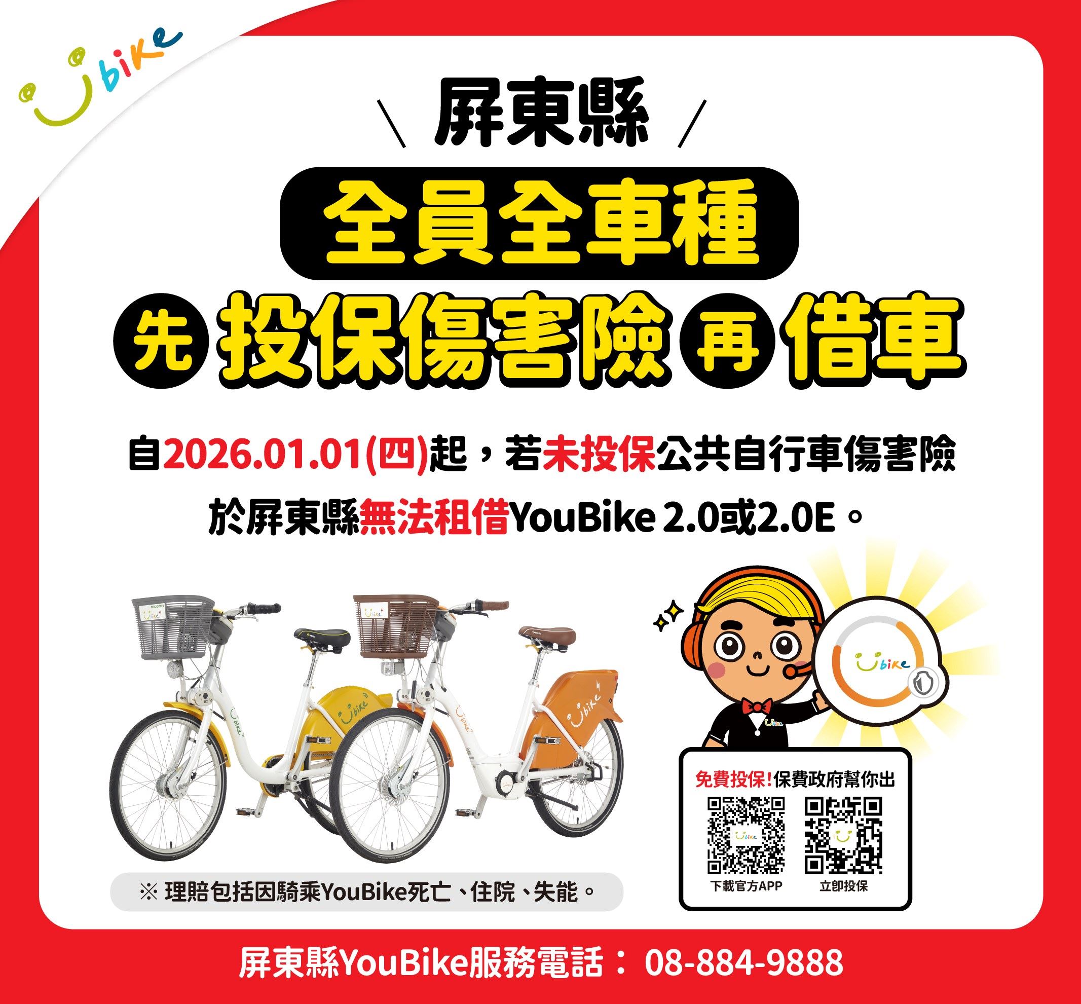 屏東縣YouBike全車種強制投保 YouBike新制上路115年1月1日起