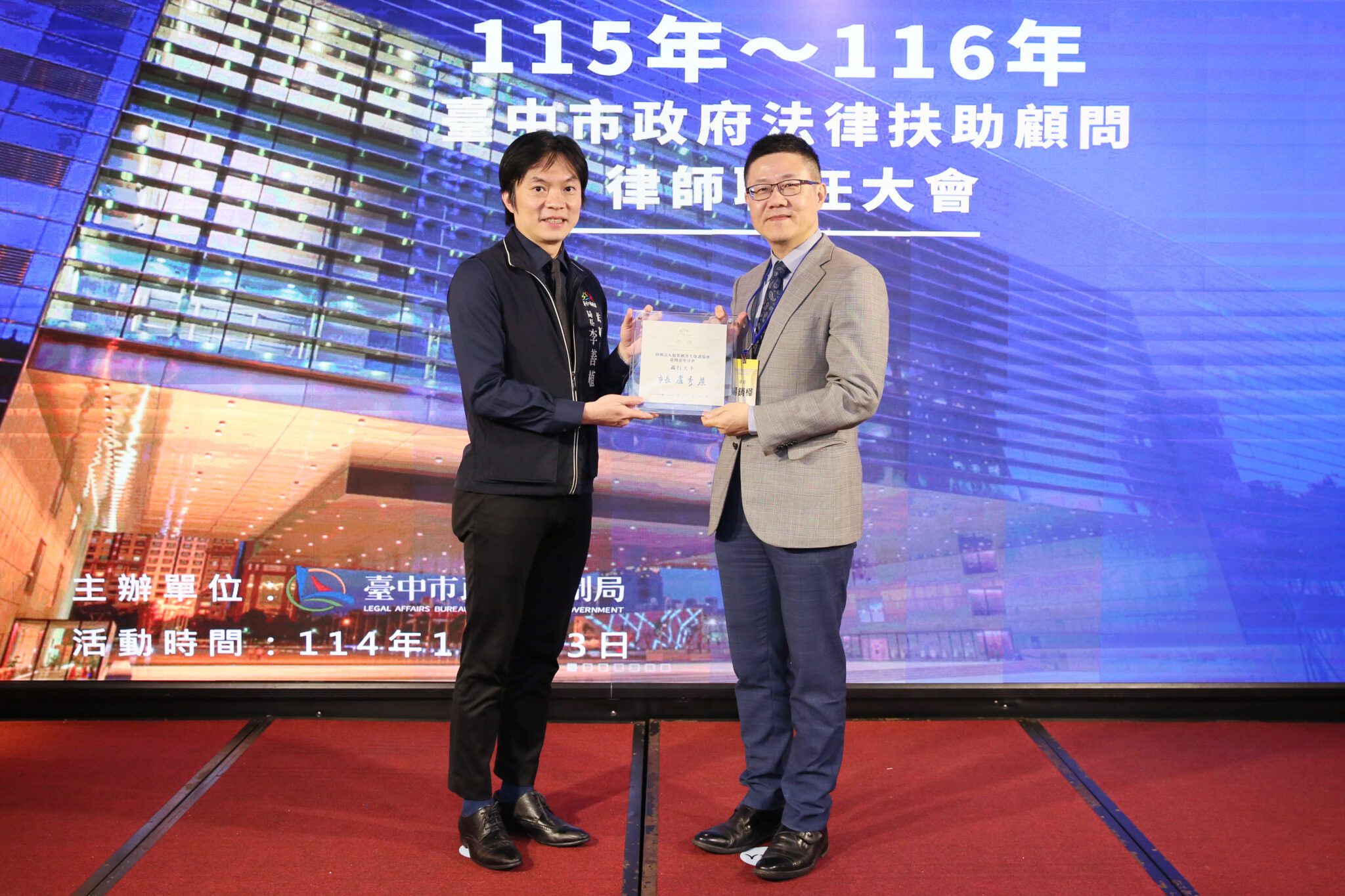強化法治後盾 中市府頒聘182名法律扶助顧問律師、深化便民服務