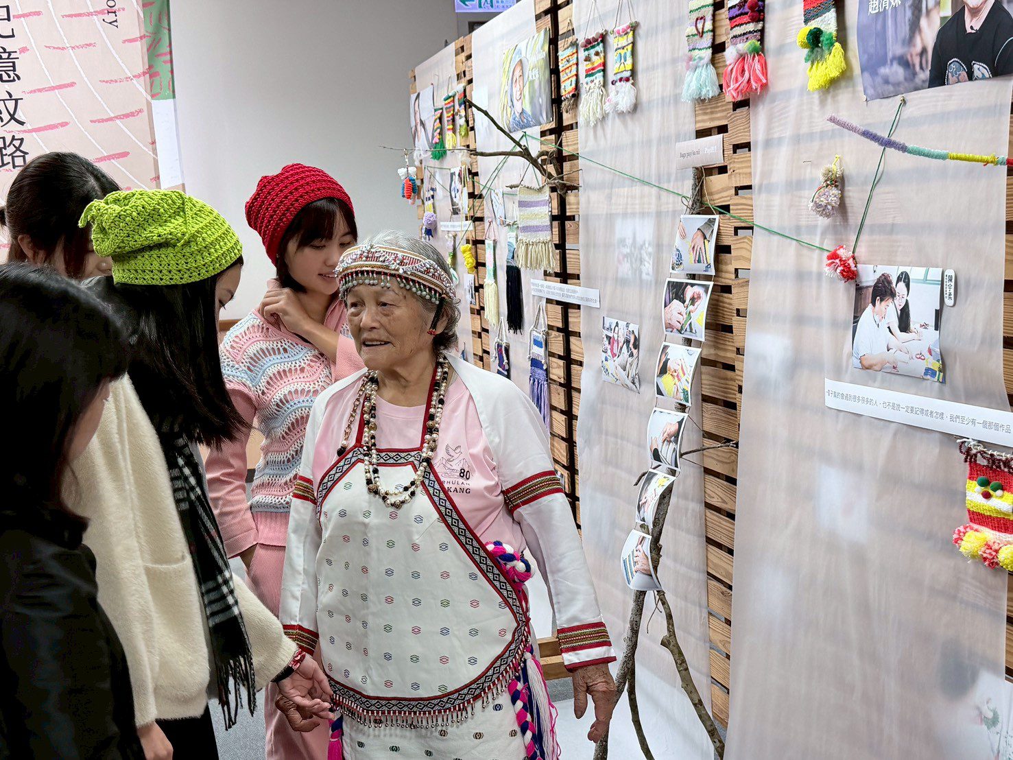 教室原音重現,並和來自不同系所的學生一起編織,大學生們不僅從長輩的身上看見文化的傳