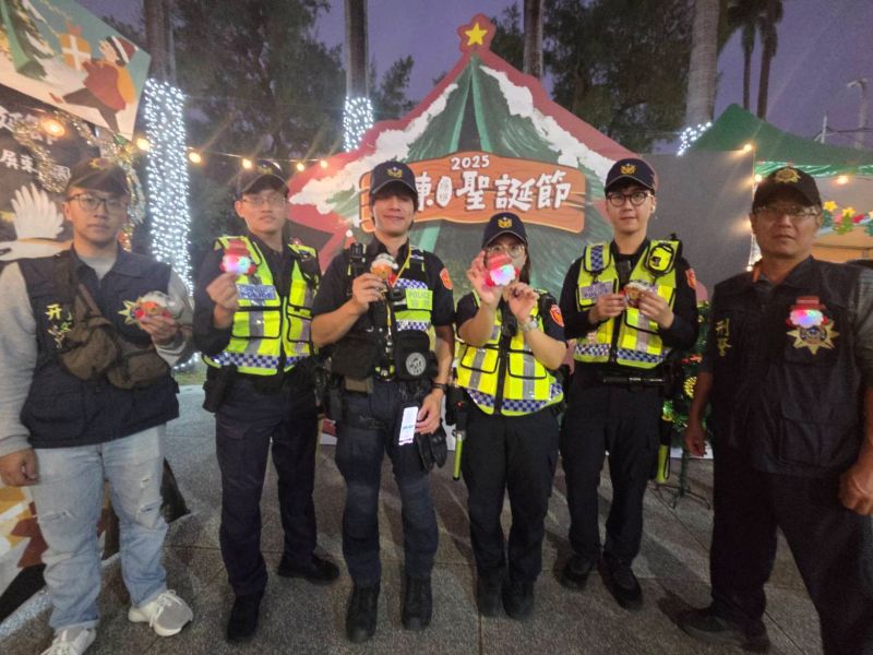 屏東警分局表示,聖誕節期間活動人潮眾多,警方除全力維護交通順暢與治安安全,也希望透過這份小小巧思,讓民眾感受到警察不只是執法者,更是陪伴大家安心過節的守護者,在節慶夜晚用溫暖的光,守護每一份平安。