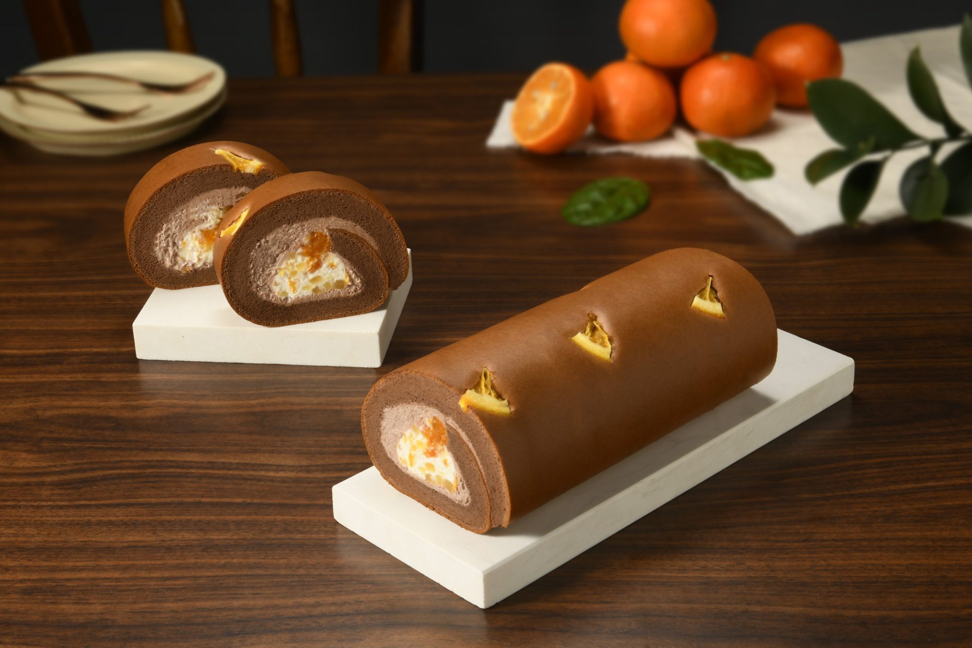 內餡採用亞尼克擅長的多層次厚工處理,捲入貝可拉可可粉所調製的可可奶霜與柑桔奶霜。讓人驚豔的是濟州橘風巧克力生乳捲以多達5種的柑橘風味碰撞可可,包含濟州島柑橘蜂蜜茶特製的清新柑橘凍增加口感,再加入微醺香橘瓣、四季桔果泥以及鮮嫩橘瓣,在醇厚微苦與濃郁的口感中,享受清爽酸甜的柑橘尾韻,每一口都帶來滿滿的幸福感。
