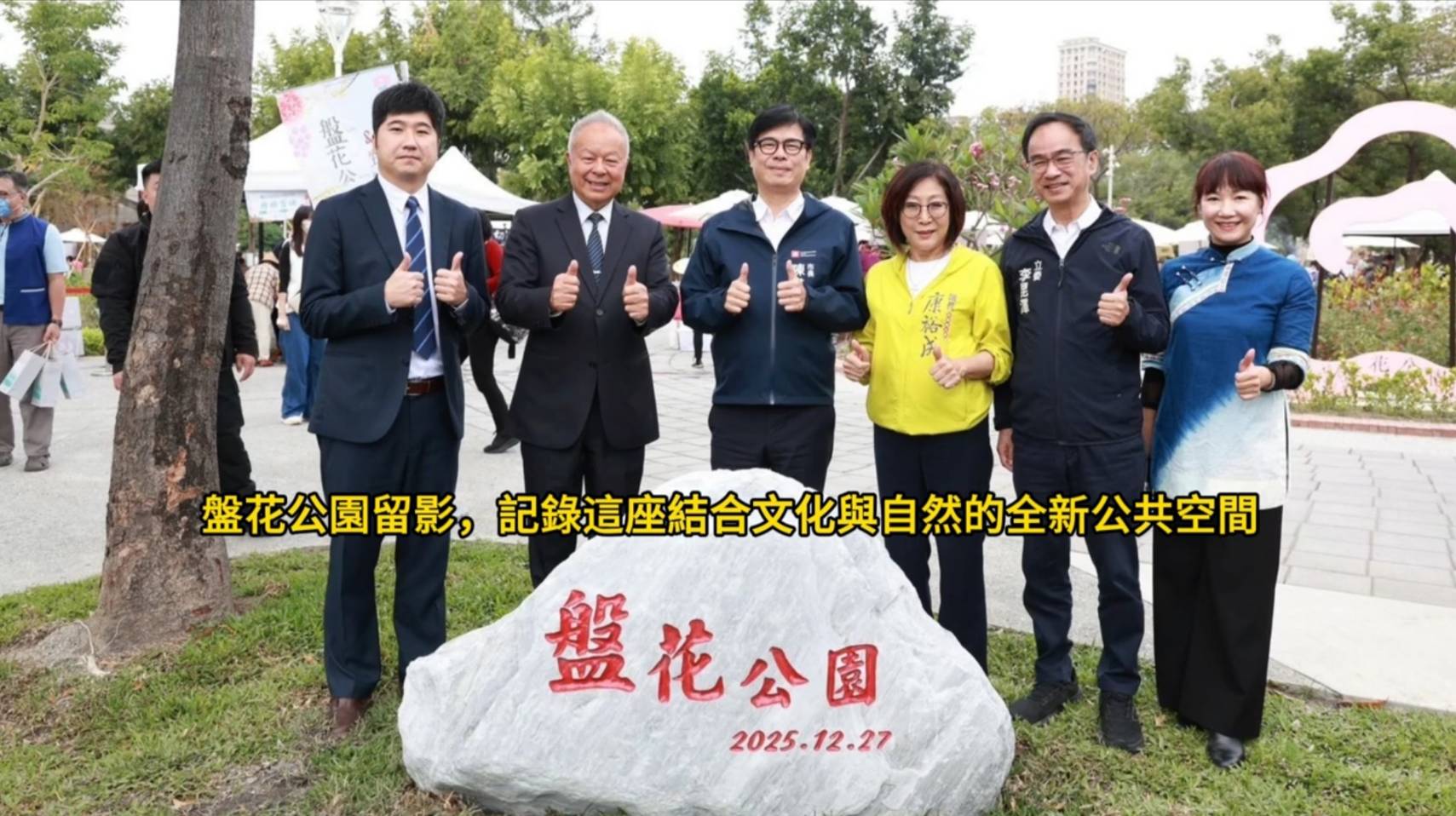 園區空間保留原有綠蔭,並結合愛河景觀,打造適合全齡使用的休憩場域。市長也親自與民眾一同走讀公園,品嘗客家特色點心,分享盤花公園不只是休憩空間,更是一座讓文化走入日常的都會文化園地。
