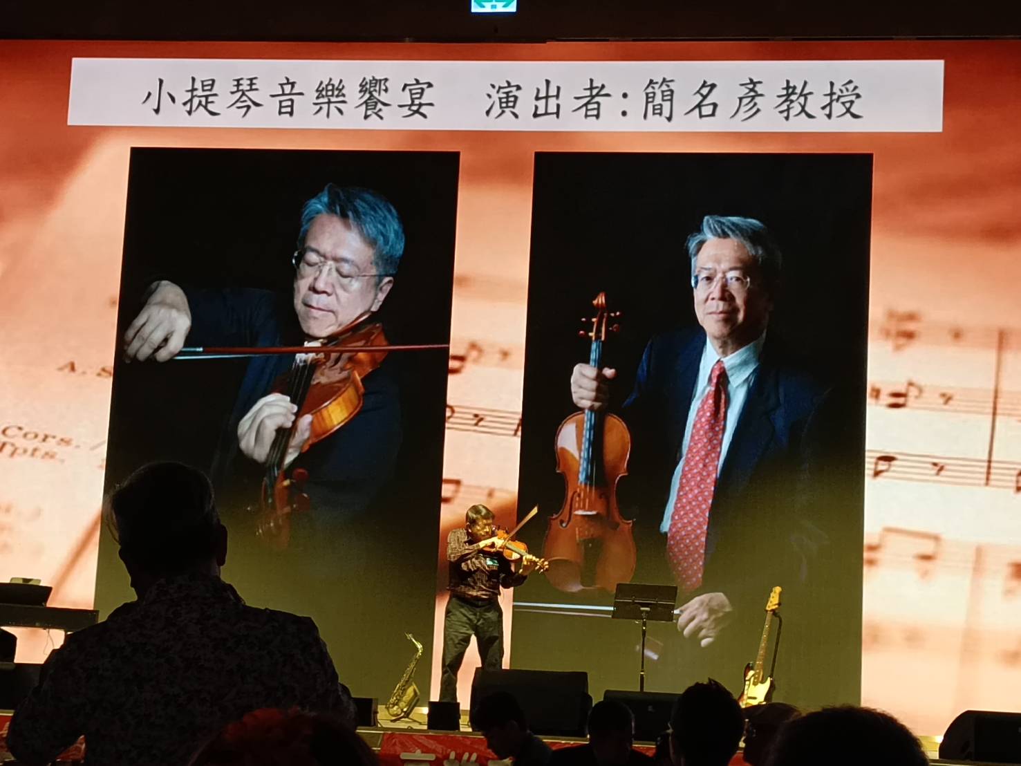高雄市高醫校友醫師協會理事長洪強修表示,簡名彥為高醫大醫學系第28屆(M69)校友,與他是同班同學,我們高醫以他為榮。簡名彥為台灣首位在國際間嶄露頭角的小提琴家,畢業於美國茱莉亞音樂學院,返台後任教於國立台北藝術大學,長年致力於演奏與音樂教育。他以富含人文情感與深度的演奏風格著稱,被譽為兼具藝術高度與教育熱忱的音樂家。簡名彥當天演奏〈泰伊思冥想曲〉、〈流浪者之歌〉等經典名作,琴音深刻動人;並特別以〈愛的禮讚〉一曲,緬懷其高醫求學時期因車禍不幸辭世的同學,令在場校友動容有感,也為年會增添一段深具意義人文樂章。