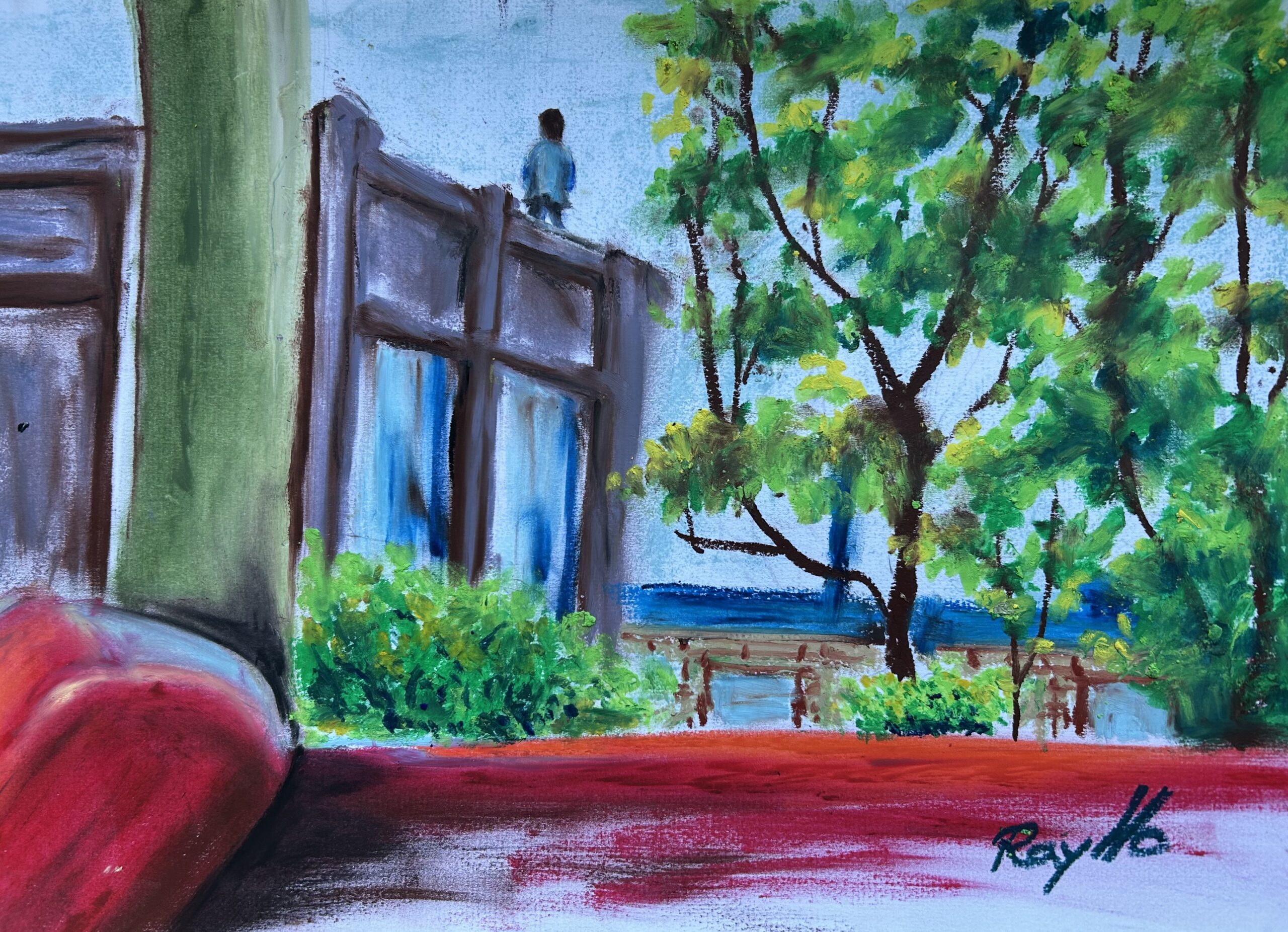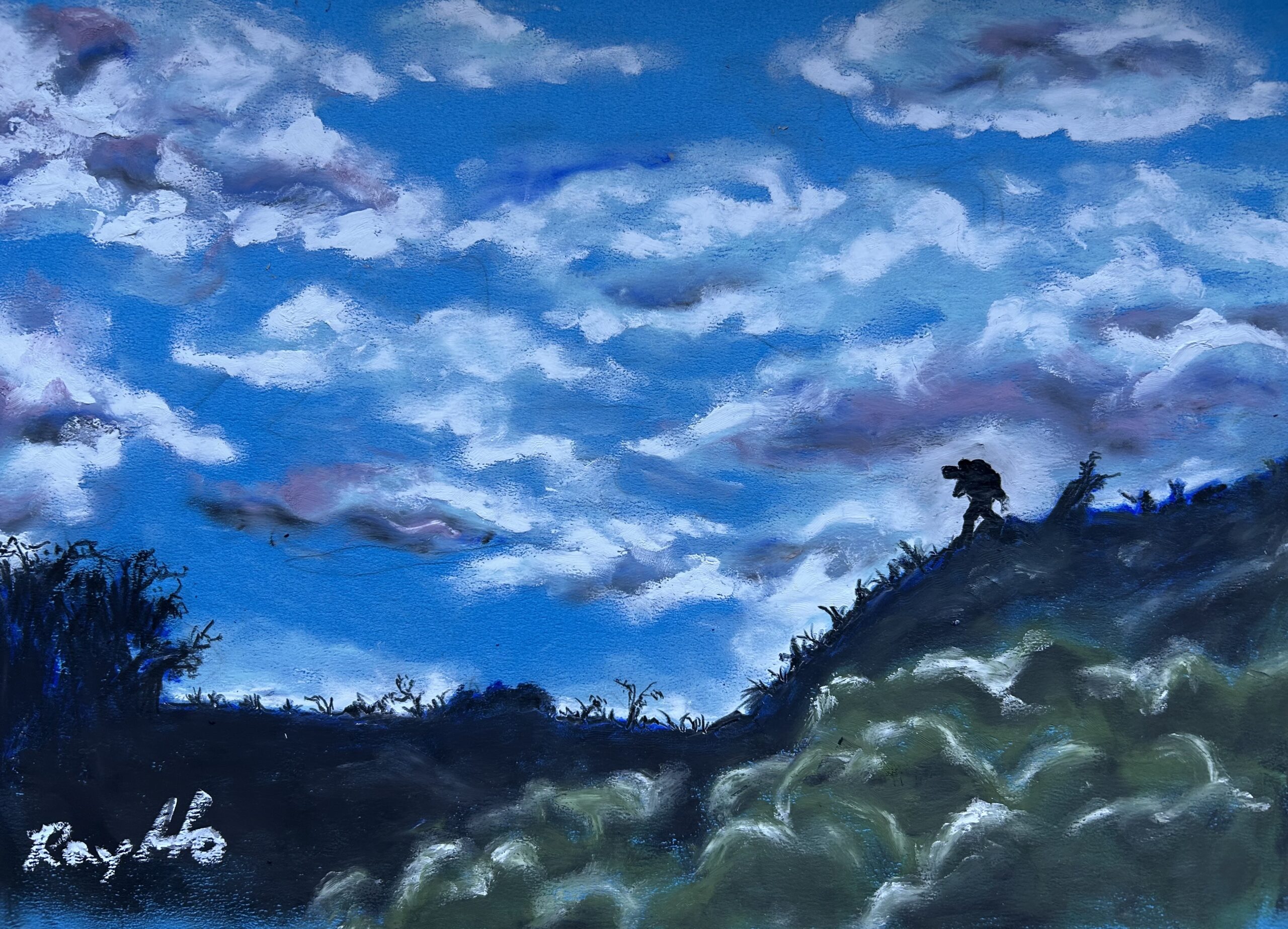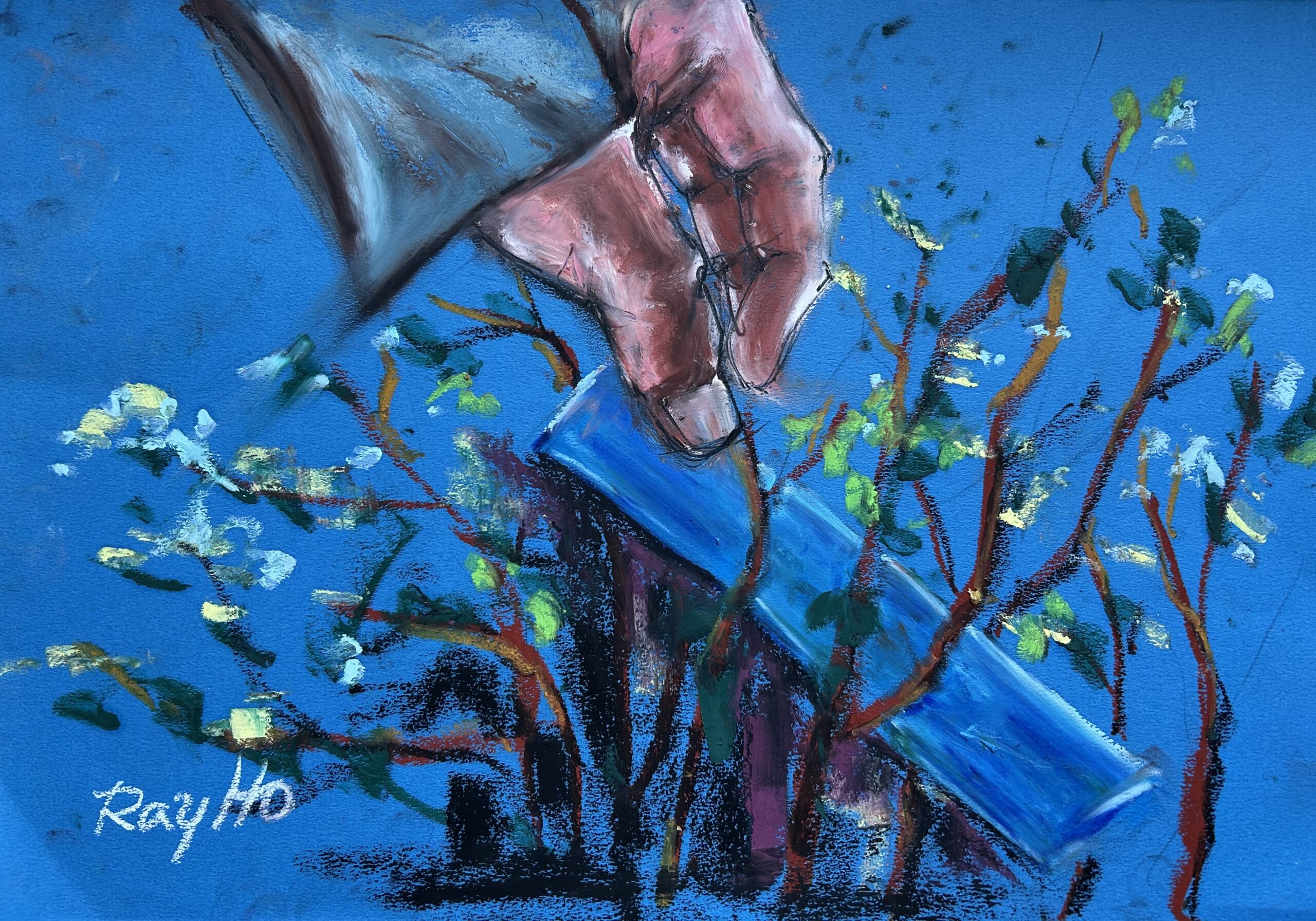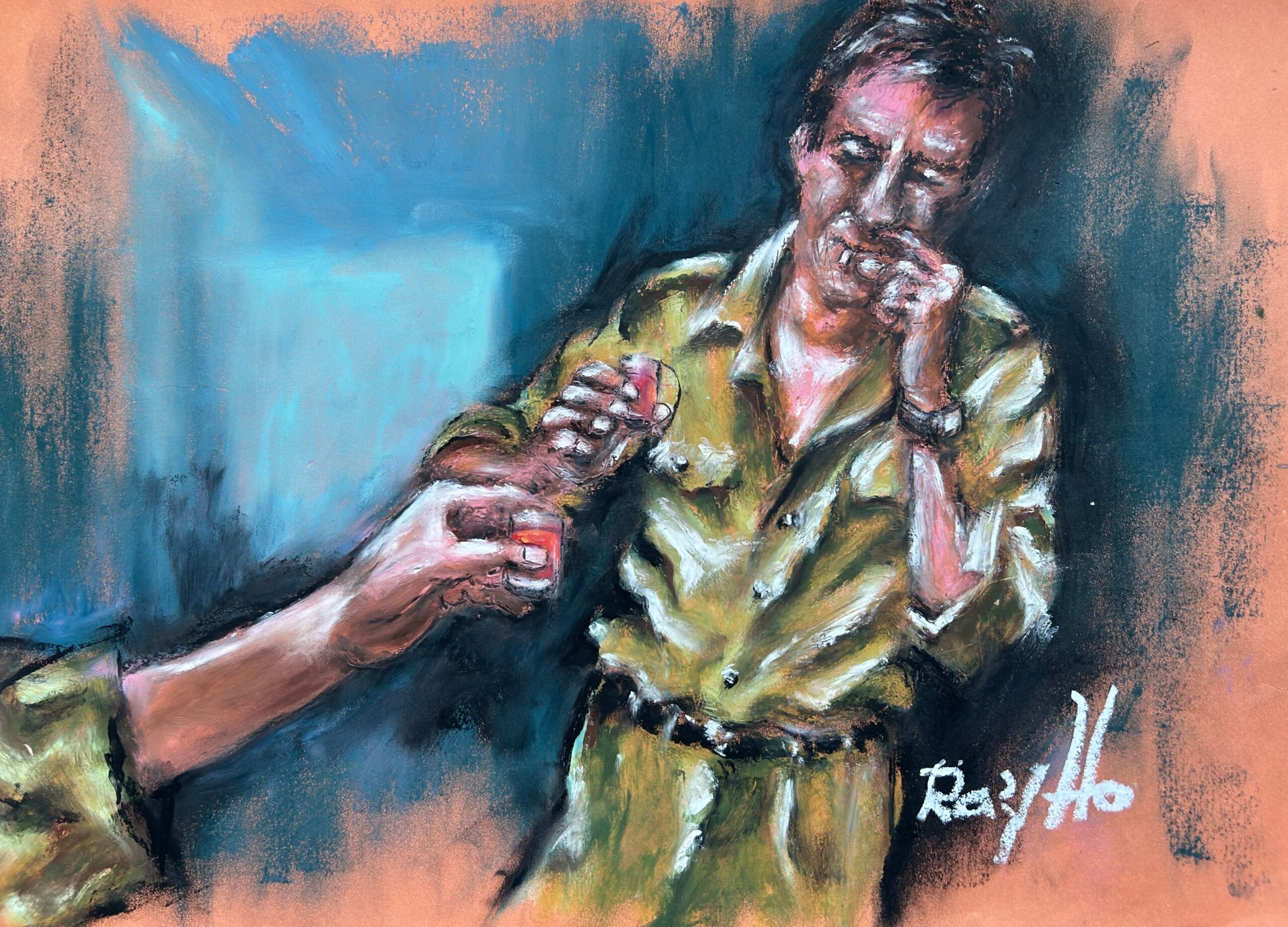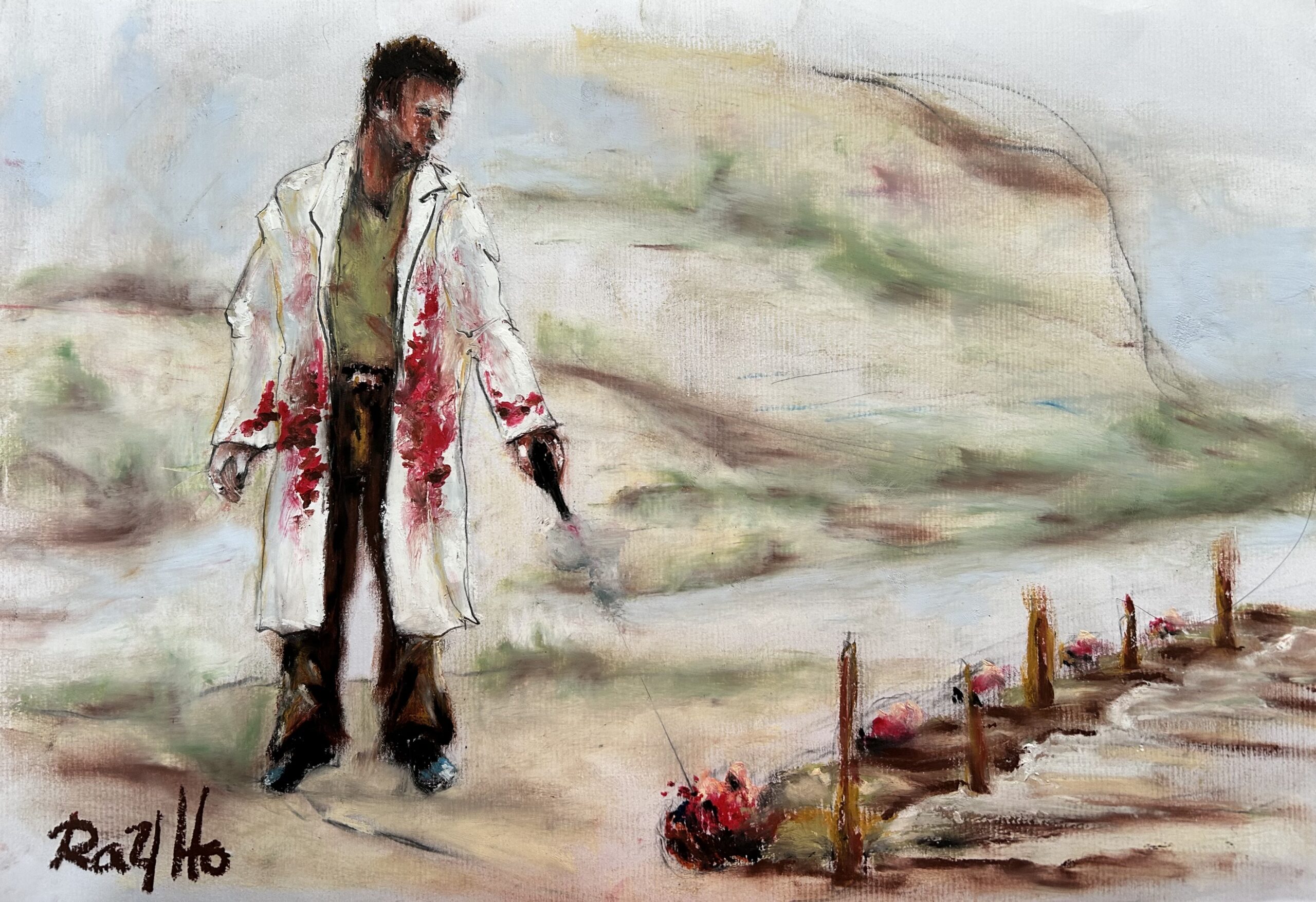 醫生和馬克分享抽大麻,但提醒馬克不要上癮,否則很難戒掉,好像在暗示著經常決定別人生或死的「權力」最後會變得無感與麻木。隨後又相互乾杯,慶幸在戰場上能存活下來是好事,並勸馬克儘快離開此地。 短短的對話,卻充滿著人道主義的關懷,在殺戮的世界裡,生命是這樣無助與脆弱,但我們又無能為力,只能默默地承受,讓自己的身心和靈魂受盡折磨而逐漸消沉。 隔天馬克離去了,臨走時,在草叢裡拾起一張藍色的卡片。