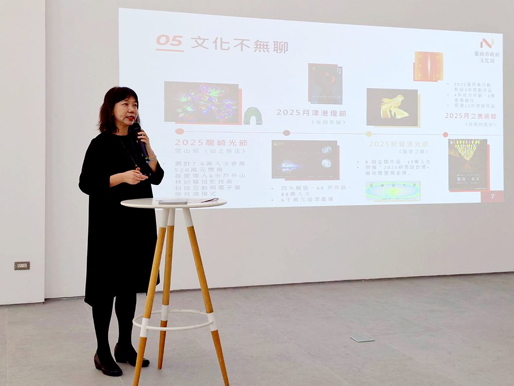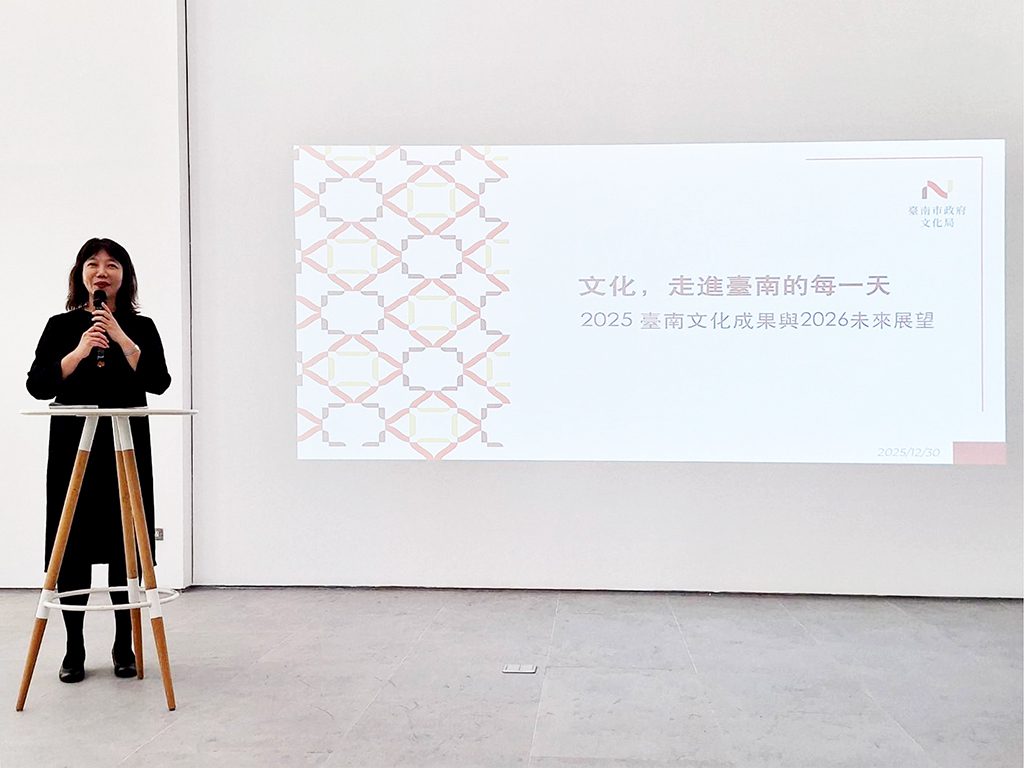 南市府文化局長黃雅玲表示面對即將到來的 2026 年,文化局將正式進入「制度化、平台化」的文化治理新階段。首要重點為成立「行政法人臺南市歷史文化場域經理平台」,整合古蹟、歷史建築與文化場域的專業經營能量,提升管理彈性與營運效能,讓文化資產不僅被保存,更能被活化與使用。