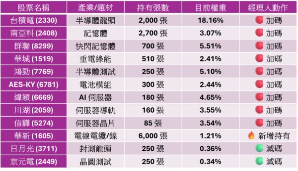 鴻勁受惠人工智慧(AI)特殊應用晶片(ASIC)成長力道強勁,以及HPC 、車用晶片需求熱絡,帶動高階測試與主動式溫控系統訂單滿載,累計今年前3季營收近209.9億元、每股純益(EPS)從2024年的32.95元,提升至2025年第3季已達53.54元,成長動能強勁。觀察00991A目前成分股布局,鴻勁權重已升至 5.1%,成為第三大成分股,充分體現主動式基金挖掘未來明日之星的靈活能力。