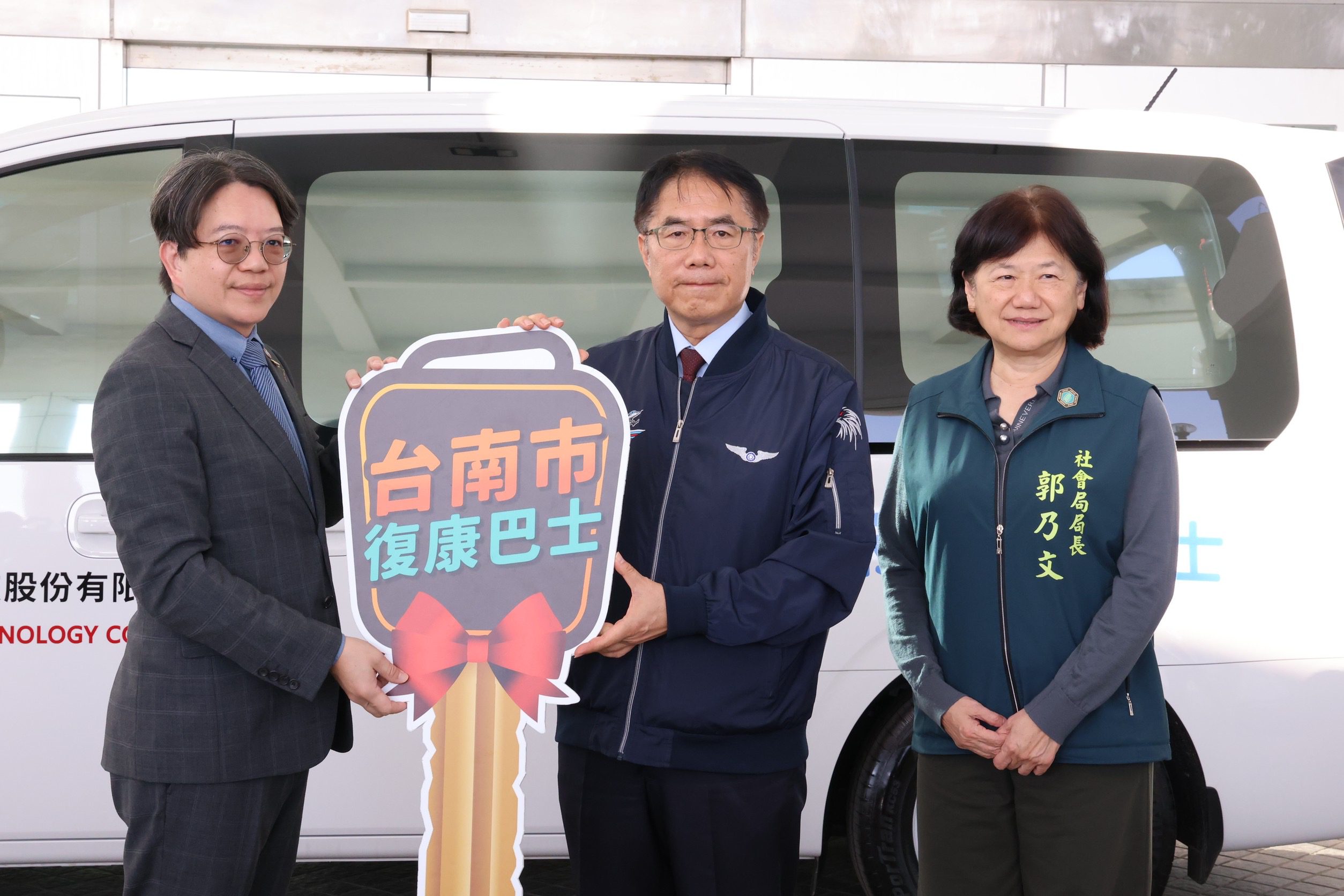 黃偉哲表示,2025年歷經楠西地震及多起風災水災,市府投入大量經費救災,也看見社會處處有愛心。台南現有155輛復康巴士,至11月底已服務逾28萬人次,使用頻繁、耗損大。感謝錸恩帕斯捐贈新車,協助年長者及行動不便市民就醫與生活所需,市府將持續結合民間力量,完善友善無障礙交通服務。